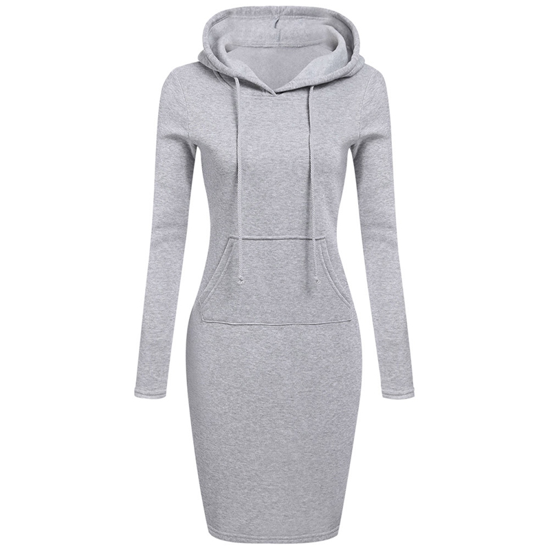 2018 Fashion Women Casual Solid Color Long Sleeve Drawstring Hoodie Dress With Pocket Slim Hooded Pullover Sweatshirt Dress Shopee Philippines